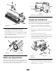 . Vrid den högra underknivsstångens justerskruv tills du känner ett lätt tryck (dvs. motstånd) i mellanlägget genom att dra det från sida till sida. Ta bort mellanlägget. 7. Rotera cylindern så att det närmaste knivbladet korsar underknivens egg mellan det första och andra skruvhuvudet på vänstra sidan av klippenheten. 8. Upprepa steg 4 till 6 för vänster sida av klippenheten och den vänstra underknivstångens justerskruv. 9.