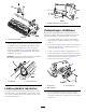 5. Aseta 0,005 mm:n välilevy merkityn terän ja kiinteän terän särmän väliin kohdassa, jossa merkitty terä ylittää kiinteän terän särmän. 6. Käännä runkopalkin oikeanpuoleista säätöruuvia, kunnes tunnet kevyen paineen (vedon) välilevyssä, kun liikutat sitä sivulta toiselle. Irrota välilevy. 7. Siirry leikkuuyksikön vasemmalle puolelle ja käännä kelaa hitaasti siten, että lähin terä ylittää kiinteän terän särmän ensimmäisen ja toisen ruuvin kannan välistä. 8.