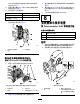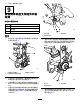 g349445 图 10 g244756 图9 1. Torx 槽螺丝5/16 x 1¼ 英寸 3. 2. 2. 配重块 4. 锁紧螺母5/16 英寸 配重块 带电动滚刀组的 TriFlex 机器 1. 疏草刀驱动箱轴 2. 银色 疏草 滚刀适配器——银 刀驱动箱和配重块位于滚 右侧 刀组的右 上紧螺丝和锁紧螺母扭矩至 2026N·m。 黑色 疏草 滚刀适配器——黑 刀驱动箱和配重块位于滚 左侧 刀组的左 重 要 事 项 让 防 松 螺 纹 油 固 化 15 分 钟 然 后 再 继续此程序。 安装疏草刀驱动箱 1. 3.