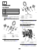 散装零件 使用下表进行核对 确保所有零件已装运。 程序 1 2 3 4 说明 数量 用途 不需要零件 – 准备机器。 扭矩扳手 未包括 – 收集安装所需工具。 不需要零件 – 准备滚刀组。 不需要零件 – 卸下传动皮带组件。 5 配重块 Torx 槽螺丝 锁紧螺母 右滚刀适配器银色 左滚刀适配器黑色 填隙垫圈 疏草刀驱动箱 1 2 2 1 1 2 1 安装疏草刀驱动箱和配重块。 6 盖子 1 安装疏草刀驱动盖仅适用于未安装后滚 筒刷套件的通用疏草刀总成。 短轴组件 轴承挡板 怠轮总成 调节环 凸缘螺母 集草斗保护装置左 集草斗保护装置右 凸缘头螺丝 左剪草高度支架组件 右剪草高度支架组件 轴肩螺栓 硬化垫圈 螺栓 ¼ x 1½ 英寸 锁紧螺母 轴夹 疏草滚刀单独订购 1 2 1 1 1 1 1 2 1 1 2 1 4 4 4 1 11 垫圈零件号 3256-24未包括 – 调整疏草刀弹簧力。 12 拉杆套件和延伸连接器适用于 Greensmaster 312、3150 和 3250 机 器 单独订购 – 安装悬挂前滚筒。 7 8 9 10