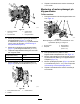 6. Tilspænd unbrakoskruerne med et moment på 10 til 12 Nm. Montering af motorophænget på klippeenheden TriFlex-maskiner 1. Ret styreremskiven ind efter klippeenheden som vist i Figur 19. g335504 Figur 17 1. Flangehovedskrue (¼" x ¾") 3. Unbrakoskrue (5/16" x 1½") 2. Styreremskive 4. Knivcylinderdrev 2. 3. Monter knivcylinderdrevet på klippeenheden (Figur 17) med flangehovedskruen (¼" x ¾"). 4.