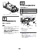 g032465 図 28 右側駆動構成 g033566 図 26 1. 3. 1. 駆動プーリ 3. アイドラ 2. ベルト 4. 受動プーリ 平たい面 左側駆動構成のカッティングユニットのセットアップに間 違いがないか、確認する図 29を参照。 プーリの整列状態を点検する図 27。 g032697 図 29 左側駆動構成 g032675 図 27 4. プーリが整列していない場合は、受動プーリの 位置を変更ワッシャを追加または減らすして調 整する。 5. 以下の要領でベルトを取り付ける 1. 駆動プーリ 3. アイドラ 2. ベルト 4. 受動プーリ 11 A. 駆動プーリにベルトを取り付ける図 28。 B. ½" のレンチか 3/16"の六角キーを使って、 アイドラスプリングのテンションを解放する。 カバーを取り付ける C.