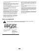 • Kulunut tai vaurioitunut terä voi rikkoutua ja terän housuja ja kuulosuojaimia. Sido pitkät hiukset. Älä käytä riippuvia koruja. pala voi sinkoutua käyttäjään tai ohikulkijaan päin, mikä voi aiheuttaa vakavan henkilövahingon tai kuoleman. • Tarkasta alue, jolla konetta on tarkoitus käyttää, ja poista kaikki esineet, jotka se voi singota, kuten kivet, leikkikalut ja johdot. • Terä on tarkistettava säännöllisesti kulumisen ja vaurioiden varalta.