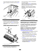 g014643 Kuva 20 g004003 1. Leikkuutanko Kuva 19 1. Mittapalkki 3. Pyöritä säätöpulttia, kunnes rulla koskettaa mittapalkin etuosaa. 4. Toista vaiheet 2 ja 3 vasemmalle puolelle. 5. Säädä rullan molempia päitä, kunnes koko rulla on yhdensuuntainen kiinteän terän kanssa. 2. Aseta 1,5 mm:n (0,060 tuuman) rakotulkki kelan yläosan ja tangon väliin ja kiristä sitten pultit. Tärkeää: Varmista, että tangon ja kelan etäisyys pysyy samana koko kelan pituudelta.