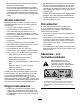 • Stanna maskinen, ta ut nyckeln (i förekommande Toro-återförsäljare vid eventuellt behov av större reparationer eller assistans. fall) och vänta tills alla rörliga delar har stannat innan du undersöker redskapet om du kör på ett föremål eller om maskinen vibrerar på ett onormalt sätt. Reparera alla skador innan du börjar köra maskinen igen. • Använd endast originalreservdelar och tillbehör från Toro för att garantera optimal prestanda och fortlöpande säkerhet för produkten.