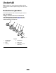 Underhåll Obs: Vänster och höger sida på maskinen är lika med förarens vänstra respektive högra sida vid normal körning. Demontera cylindern Demontera cylindern när du behöver byta ut en kniv eller cylinderlagren. Viktigt: Kontrollera att de två axelhållarna och distansbrickan finns på plats innan du monterar lagret på cylindern (Figur 6). Dra åt mutterinsatserna till 136 N·m. g016597 Figur 6 1. Vänstergängad mutterinsats 2. Lager 4. Distansbricka 3. Packning 6. Axelhållare (montera dessa först) 5.