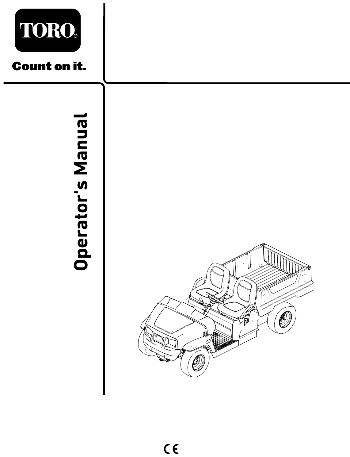 • Heavy loads affect stability on a slope. Carry a – Wait for all movement to stop reduced load and reduce your ground speed when operating on a slope or if the load has a high center of gravity. Secure the load to the cargo bed of the machine to prevent the load from shifting. Take extra care when hauling loads that shift easily (e.g., liquids, rock, sand, etc.). • Do not operate the machine when there is the risk of lightning. • Use accessories and attachments approved by The Toro® Company only.