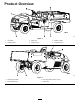 when approaching blind corners, shrubs, trees, or other objects that may obscure your vision. • You and your passengers should remain seated • Do not drive the machine near drop-offs, ditches, • The additional machine length results in a larger whenever the machine is in motion. or embankments. The machine could suddenly roll over if a wheel goes over the edge or if the edge gives way. turn radius, so allow more space to maneuver the machine.