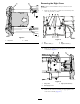 Removing the Right Cover Note: Retain all the hardware that you remove in this procedure. 1. Remove the negative (–) cable from the battery and then the positive (+) cable. g034000 Figure 3 g034125 1. Left panel Figure 4 2. Screw 1. Nut 2. Positive cable (+) 3. Bolt 4. Negative cable (–) 2. Remove the 2 flange bolts that secure the battery tray to the frame (Figure 5). g033999 Figure 5 1. Flange bolt 3. Right panel assembly 2. Self-tapping screw 3.