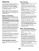Före körning Säkerhet • Bekanta dig ordentligt med reglagen och lär dig att Felaktig användning eller felaktigt underhåll från förarens eller ägarens sida kan leda till personskador. För att minska risken för skador ska du alltid följa säkerhetsanvisningarna och uppmärksamma varningssymbolen, som betyder: Var försiktig, Varning eller Fara – anvisning om personsäkerhet. Om anvisningarna inte följs kan det leda till personskador eller dödsfall. • • • Maskinen uppfyller kraven i standarden SAE J2258.