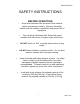 3362-141 Rev B SAFETY INSTRUCTIONS While operating • Verify capacity rating for the vehicle. Make sure that the GVW capacities are not exceeded. • Avoid sudden stops or sharp turns. • Always use safety belts. • Never allow riders on top of cab or in bed while operating vehicle. • Stay alert for hidden hazards and traffic. • Avoid sudden starts and excessive speeds. • Use extreme care when working around fences, ditches or on hillsides. • Check clearances carefully before driving under any objects.