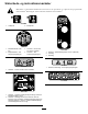 115-2281 4. Motor – kører 5. Motor – start 93-9899 1. Forlygter 2. Horn 3. Motor – stop 93-9899 1. Fare for knusning – monter cylinderlåsen. 106-7767 1. Advarsel – læs betjeningsvejledningen. Undgå at tippe maskinen, spænd sikkerhedsselen, læn dig væk fra den retning, maskinen tipper.