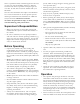 If the engine cranks or starts, there is a malfunction in the interlock system that must be repaired before operating the vehicle. • Check the fluid and engine oil levels regularly and be alert for indications of overheating in any component of the vehicle. • After starting a cold engine, let it warm up for about 15 seconds before shifting into gear. • Avoid racing the engine. • To ensure optimum performance of the brake system, burnish (break–in) the brakes before use.