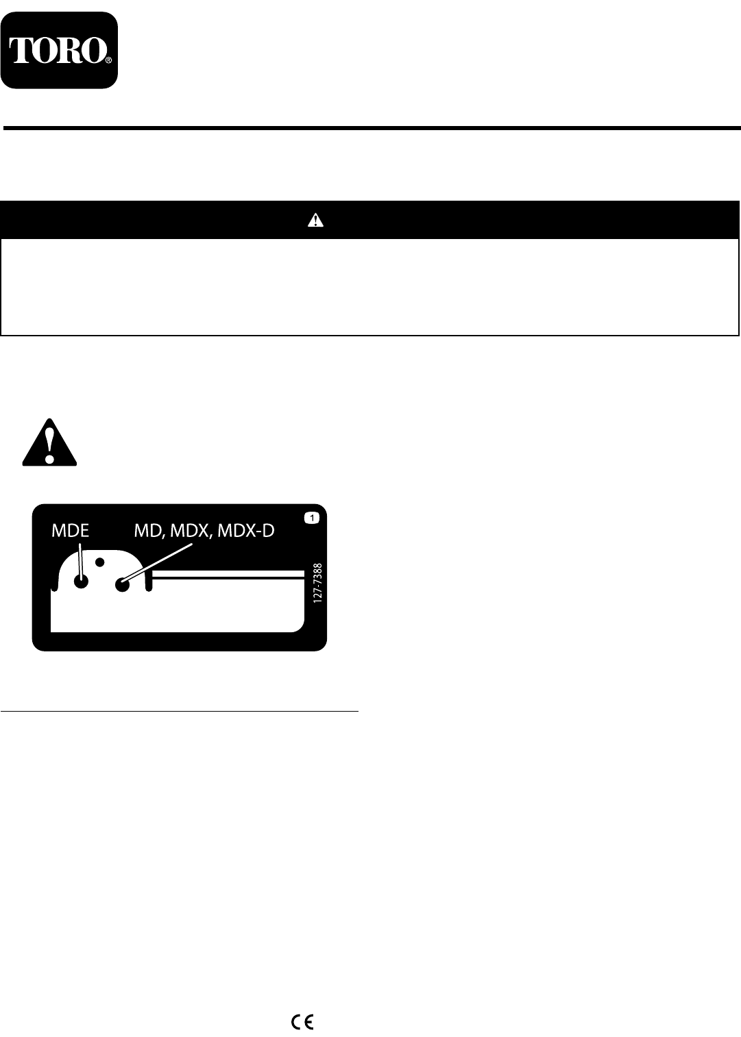 Form No. 3392-906 Rev A Elektrisk planløftesett Workman®-nyttekjøretøy MDE fra 2014 og nyere Modellnr. 07396—Serienr. 315000001 og oppover Installasjonsveiledning Sikkerhet ADVARSEL CALIFORNIA Proposition 65-advarsel Dette produktet inneholder et kjemikalie eller kjemikalier som staten California vet forårsaker kreft, fødselsdefekter eller forplantningsskade.