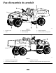 Vue d'ensemble du produit g319171 Figure 4 1. Loquet du capot 3. Plateau de chargement 5. Chargeur de batterie 2. Volant 4. Flèche d'attelage 6. Levier du plateau de chargement g319172 Figure 5 1. Poignée de maintien du passager 3. Attelage de remorque 2. Levier de frein de stationnement 4.