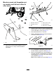 Tillvägagångssätt 3 Obs: Kontrollera att trycket i fram- och bakdäcken är 0,28–0,41 bar (4-6 psi). 1. Montera monteringsfästena Obs: Placera blocken under bakhjulens Delar som behövs till detta steg: 2 Monteringsfäste 4 Skruv (1/2 x 3 1/2 tum) 4 Låsmutter (½ tum) Stötta upp maskinens bakre del och ta bort bakdäcken. motorfästen. 2. Fäst ett monteringsfäste löst vid höger och vänster fotstödsrör med hjälp av två skruvar (1/2 x 3,5 tum) och låsmuttrar (1/2 tum).