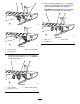 Montáž sestavy náboje a zajišťovacího pedálu g210450 g252122 Obrázek 5 1. Pojistná matice (5/16") 4. Vratový šroub (5/16" x ¾") 2. Pojistná matice (¼") 5. Podložka (9/32") 3. Sestava náboje 6. Šroub (¼" x 2¾") 2. Pomocí šroubu (¼" x 2¾"), podložky (¼") a pojistné matice (¼") připevněte spodní část sestavy náboje k rámu stroje, viz Obrázek 5. 3. Utáhněte pojistné matice na utahovací moment 71 až 92 N·cm. 4. Vyrovnejte pojistný pedál s levou nožní opěrkou a otvory v sestavě náboje (Obrázek 6).