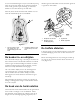 minder agressief wilt harken of in de bovenste gaten als u agressiever wilt harken. in een van beide richtingen en rij in een rechte lijn terug naast de eerste baan. Werk in een spiraal naar buiten zoals wordt getoond op de tekening, en verlaat de bunker in een rechte hoek op een vlak stuk. Sla steile, korte taluds en kleine holle stukken over en werk die naderhand bij met een handhark. 1 2 3 4 2 1 G003410 Figuur 10 1. Draaipunt van de hark 2. Beugels van de werktuigkoppeling G003409 3. Agressiever 4.