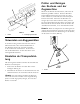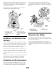 Wichtig: Der lange Arm des Hubarms muss sich unter dem hinteren Rahmen der Zugmaschine befinden (Bild 6). 3 Einstellen der Spannvorrichtung Wenn Sie nicht aufpassen, können Sie die Finger zwischen den Adaptern des Anbaugeräts und der Zugmaschine einquetschen. Keine Teile werden benötigt Sie sollten das Anbaugerät immer mit dem Griff hinten am Anbaugerätadapter anheben und bewegen (Bild 5). Verfahren 1. Wenn der Rechen montiert und an der Zugmaschine befestigt ist, heben Sie das Anbaugerät an. 4.