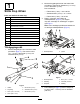 2 Montera tandkrattan på traktorenheten Delar som behövs till detta steg: 2 Skruv (3/8 x 2 1/2 tum) 4 Bricka (3/8 x 7/8 tum) 2 Distansbricka 2 Låsmutter (⅜ tum) Tillvägagångssätt 1. 2. g220791 Figur 6 Om det sitter något redskap baktill på maskinen ska det tas bort. 1. Traktorenhetens rörram 2. Lyftarmsenhetens långa arm 3. Skruv (3/8 x 2 1/2 tum) Sänk ned traktorenhetens hållare och backa sedan traktorn så att den står i rätt läge framför redskapshållaren. 5. Distansbricka 6. Kedja 7.