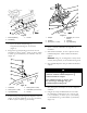 1 2 3 4 5 6 2 3 1 3 G003434 G003432 Figur 9 1. Buet drejebeslag 2. Rivebeslag Figur 11 3. Løvrive 1. Adapter 2. Håndtag 3. Skive (0,531 x 1,063) C. Fjern det buede drejebeslag og fastgørelsesanordningerne fra løvriven (Figur 9). 4. Gaffelbolt (1/2 x 4-1/2 tomme) 5. Låseclips 6. Lige drejebeslag 4. Fjern eventuelle redskaber fra bagenden af maskinen. 2.