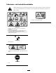 Säkerhets- och instruktionsdekaler Säkerhetsdekalerna och säkerhetsinstruktionerna är fullt synliga för föraren och finns nära alla potentiella farozoner. Dekaler som har skadats eller försvunnit ska bytas ut eller ersättas. 106-5517 1. 98-3110 1. Varning – läs bruksanvisningen och se till att du får utbildning. 2. Varning – bär hörselskydd. 3. Risk för utslungade föremål – bär ögonskydd och håll kringstående på behörigt avstånd från maskinen. 4.
