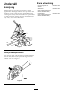 Körning Obs: Om redskapshållaren fastnar i hållaren på traktorenheten för du in en bändare/skruvmejsel i bändöppningen för att lossa delarna (Figur 6). Använda spikdressnätet • Spikdressnätets djup bestäms av hur det ligger an mot marken. • Justera hur djupt spikarna ska gå genom att göra följande: 1 – Ta bort hjulsprintarna från sprintbultarna (Figur 5). G003783 Figur 6 1. Bändöppning Figur 5 – Tryck plattorna nedåt för att öka djupet eller släpp upp dem för att minska djupet.