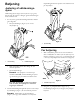 1 G008122 Figur 11 Figur 9 1. Pumpeklemme Bemærk: Hvis Sand Pro ikke kan flyttes til den ønskede position, kan pumpen fjernes fra huset og placeres i vandet. Pumpen fjernes ved at skubbe pumpeklemmen fremad, skyde pumpen tilbage på stellet og løfte pumpen ud vha. håndtaget. 2 2. Start fjernhydraulikken for at aktivere pumpen, før pumpen sættes i vand. Det forhindrer, at snavs sætter sig fast i pumpe og pumpehus og standser pumpehjulet. 1 3. Sænk pumpen ned i vandet.