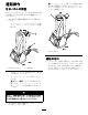 運転操作 注 ハンドル・ノズル(図 7)の抵抗を強ま たは弱く調整したい場合には、ピボット・ タワーの上部についている大きいナットの トルクを調整します。 吐出ノズルの調整 吐出ノズル(図 6)は、上下方向または左右方 向に動かして水を飛ばす方向を調整すること ができます。 1. 水を飛ばす距離の調整は以下の手順で行 います: • ロックアップ・ハンドル(図 6)を回 して、ピボット・タワーのロックを解 除する。 1 2 1 G008120 図7 1. ノズル・ハンドル 運転の前に 1. バンカーの一番低い場所で、水の深さを測 る。水深が6.35 cm(ポンプのスロットの半 分の高さ)以下である場合には、縦横各 30 cm、深さ 5~7.5 cm の穴を掘って、こ の穴の中にポンプをセットする(図 8)。 G008121 図6 1. ロックアップ・ハンドル 2.