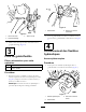 Utilisation Remarque: Les côtés gauche et droit de la machine sont déterminés d'après la position d'utilisation normale. Utilisation du coupe-bordures 1. Démarrez le moteur. 2. Poussez la poignée vers l'extérieur et abaissez la lame du coupe-bordures au sol (Figure 10). 3. Engagez la lame en tirant sur le bouton de commande hydraulique à distance (Figure 12). Figure 13 1. Galet 3. Tige de racloir 2. Axe de galet 4. Déposez l'axe du galet (Figure 13). 5.