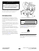 Montaje Piezas sueltas Utilice la tabla siguiente para verificar que no falta ninguna pieza. Procedimiento 1 2 3 4 5 Descripción Uso Cant. Tubo transversal Tornillo (3/8 x 3 pulgadas) Arandela plana Contratuerca (3/8 pulgada) Cabezal de corte Pasador de enganche Guía de las mangueras Tuerca con arandela prensada 1 4 4 4 1 1 1 1 No se necesitan piezas – Enrute las mangueras hidráulicas. No se necesitan piezas – Compruebe el aceite hidráulico. Monte el tubo transversal.