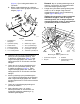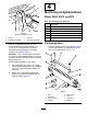 g016193 Figur 39 1. Fjeder g016132 Figur 38 1. Hældningsbeslag 5. 25,4 cm tine 2. 40,6 cm tine 3. 30,5 cm tine 6. 35,6 cm tine 7. Drejebolt på tinehovedet 4. 17,8 cm tine 8. Fjeder 5. Roter hældningsbeslaget, indtil det er på linje med det ønskede hul i armen, og fastspænd bolten og møtrikken. 4. Fjern støddæmperbolten og støddæmperen fra forbindelsesarmen, og sæt dem i det andet justeringshul (Figur 39). 5. Tilslut fjederspændingen på tinehovedet.