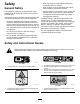 Safety • Keep the machine a safe distance away from General Safety • Keep children out of the operating area. Never bystanders while it is moving. allow children to operate the machine. • Stop the machine, shut off the engine, engage the This product is capable of causing personal injury. Always follow all safety instructions to avoid serious personal injury. parking brake, remove the key, and wait for all moving parts to stop before servicing, fueling, or unclogging the machine.