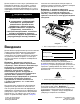 • • • • • • • • • • • • • • алкоголя, наркотиков или лекарственных препаратов, ухудшающих реакцию. Не перевозите на машине пассажиров, а также не допускайте людей и домашних животных в зону работы машины. Эксплуатируйте машину только в условиях хорошей видимости, чтобы уберечься от ям или скрытых опасностей. Держите руки и ноги на безопасном расстоянии от зубьев. Прежде чем начать движение задним ходом, посмотрите назад и вниз, и убедитесь, что путь свободен.
