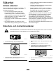 Säkerhet • Håll kringstående på säkert avstånd från maskinen Allmän säkerhet • Håll barn på säkert avstånd från arbetsområdet. Den här produkten kan orsaka personskador. Följ alltid alla säkerhetsanvisningar för att undvika allvarliga personskador. • Stoppa maskinen, stäng av motorn, koppla in när den är i rörelse. Låt aldrig barn köra maskinen. parkeringsbromsen, ta ut nyckeln och vänta tills alla rörliga delar har stannat innan du tankar, rensar eller utför underhåll på maskinen.