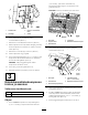 4 Salpakokoonpanon asennus (manuaalisella kuljetuslavan nostolla varustetut koneet) Vaiheeseen tarvittavat osat: Kuva 11 1 Salpakokoonpano 4 Laippakantapultti (5/16 × 3/4 tuumaa) 2 Kahva 1. Kahvavipu (salpakokoonpano) 2. Kahva 5. Kohdista jousen pitkä ruoto salpakokoonpanon jousen kiinnikkeeseen (Kuva 12). Ohjeet 1. Kohdista salpakokoonpanosarjan reiät uuden kuljetuslavan kierreholkkiin (Kuva 10). Kuva 10 1. Salpakokoonpano 3. Laippakantapultti (5/16 × 3/4 tuumaa) 2.