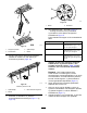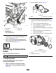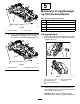 g241100 Figur 26 Højre side af trimmerboksen er vist g240875 Figur 24 1. Fjern aftapningsproppen fra drænåbningen. 3. Løsn luftventilproppen. 1. Luftventilprop 3. Aftapningsprop 2. Påfyldningsprop 2. Fjern påfyldningsproppen fra påfyldningshullet. 6. Ryk klippeenheden frem og tilbage for at sikre fuldstændig aftømning. Når olien er helt aftappet, skal klippeenheden placeres på en plan overflade. Afmontering af trimmerdrevboksen 7. Monter aftapningsproppen. montering, medmindre andet er anført.