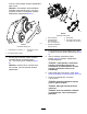 g032402 Kuva 19 1. Harja 5. 2. Terä Kiedo hihnat löysästi kuvan (Kuva 17) mukaisesti tasaajakelan akselin ja harjojen ympärille ja työnnä hihnat harjojen uriin (Kuva 19). Asettele hihnat harjoille seuraavan taulukon mukaisesti: Kelan koko Hihnan väli 46 cm Aseta hihnat seuraavien terien väliin: 2 ja 3; 11 ja 12; 21 ja 22; 30 ja 31. 56 cm Aseta hihnat seuraavien terien väliin: 2 ja 3; 14 ja 15; 26 ja 27; 38 ja 39.