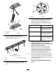 2. På sidan med trimmardrivningens låda: Skjut in klipphöjdsfästets justerarmsstång i utrymmet på trimmardrivningens låda och säkra den med ett justerstift och en saxpinne enligt Figur 11. Obs: Justerstiftet måste monteras från maskinens insida mot utsidan. g232400 g232388 Figur 11 Figur 12 1. Justerstift 3. Saxpinne 1. Justerstift 4. Saxpinne 2. Justerarmsstång 4. Trimmardrivningens låda 2. Justerarmsstång 5. Mellanremskivenhet 3. Justeringskrage 3.