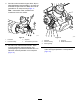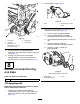 g241100 Figur 26 Trimmarlådans högra sida visas g240875 Figur 24 1. Ta bort avtappningspluggen från dräneringsöppningen. 3. Lossa avluftarpluggen. 1. Avluftarplugg 3. Avtappningsplugg 2. Påfyllningsplugg 2. Ta bort påfyllningspluggen från påfyllningsöppningen. 6. Gunga klippenheten fram och tillbaka så att all olja rinner ur. Ställ klippenheten på ett plant underlag när all olja är urtappad. 7. Sätt tillbaka avtappningspluggen. 8.