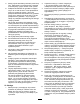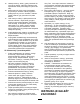 15. Uważaj na dziury, koleiny, garby, kamienie lub inne ukryte obiekty. Nierówne podłoże może spowodować utratę równowagi lub oparcia dla stóp. 16. Mokra trawa lub liście mogą doprowadzić do poważnych obrażeń ciała w przypadku poślizgnięcia się na nich i kontaktu z ostrzem. Unikaj koszenia, gdy jest mokro lub pada deszcz. 17.