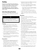 Safety • Inspect the area where the equipment is to be used and remove all objects such as rocks, toys, and wire which can be thrown by the machine. • Use extra care when handling gasoline and other fuels. They are flammable and vapors are explosive. – Use only an approved container – Never remove the gas cap or add fuel with the engine running. Allow the engine to cool before refueling. Do not smoke. – Never refuel or drain the machine indoors.