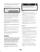 • Do not over-load the attachment and always keep the load level when raising the loader arms. Logs, boards, and other items could roll down the loader arms, injuring you. Operation • Never run an engine in an enclosed area. • Only operate in good light, keeping away from holes and hidden hazards. • Never jerk the controls; use a steady motion. • Be sure all drives are in neutral and parking brake is engaged before starting the engine. Only start the engine from the operator’s position.