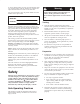 Operation • Do not over-load the attachment and always keep the load level when raising the loader arms. Logs, boards, and other items could roll down the loader arms, injuring you. • Never run an engine in an enclosed area. • Only operate in good light, keeping away from holes and hidden hazards. • Never jerk the controls; use a steady motion. • Be sure all drives are in neutral and parking brake is engaged before starting the engine. Only start the engine from the operator’s position.