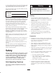 Operation • Do not carry a load with the arms raised. Always carry loads close to the ground. • Never run an engine in an enclosed area. • Do not over-load the attachment and always keep the load level when raising the loader arms. Logs, boards, and other items could roll down the loader arms, injuring you. • Only operate in good light, keeping away from holes and hidden hazards. • Be sure all drives are in neutral and parking brake is engaged before starting the engine.
