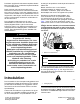 CE-bestämmelserna och får inte säljas eller användas inom EU enligt lag. g016711 Figur 4 1. Gasjusterskruv 2. Aluminiumrör 4. Stäng av motorn. 5. Dra ett aluminiumrör över gasjusterskruven och kontramuttern (Figur 4) och fäst det över skruven så att den inte kan justeras igen. Viktigt: Röret måste täcka kontramuttern helt så att den inte kan kommas åt. 6. Stäng den bakre åtkomstpanelen och fäst den med förankringsfästet.