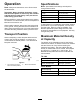 Specifications Operation Note: Specifications and design are subject to Note: Always use the traction unit to lift and move change without notice. the attachment. Width 132 cm (53 inches) that the mount plates are free of any dirt or debris and that the pins rotate freely. If the pins do not rotate freely, grease them.
