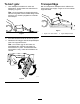 Ta bort golv 1. Transportläge Luta redskapet helt bakåt och sänk ned lastarmarna. Använd detta som startvinkel för skrapning av golvet. När du transporterar redskapet ska du hålla det så nära marken som möjligt – högst 15 cm över marken. Tippa det bakåt. Obs: Om du använder en skrapvinkel som är större än 30 grader kan det orsaka slitage i förtid på kniven och minska synligheten av området som skrapas. g371206 Figur 9 g371242 Figur 7 1. Högst 15 cm över marken 2.