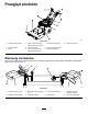 Rozwiązywanie problemów Problem Silnik przegrzewa się. Możliwa przyczyna 1. Silnik jest nadmiernie obciążony. 1. Zmniejsz prędkość jazdy. 2. Niski poziom oleju w skrzyni korbowej. 2. Dolej oleju do skrzyni korbowej. 3. Usuń wszelkie przeszkody z żeberek chłodzących i przewodów powietrznych. 3. Żeberka chłodzące i przewody powietrzne pod obudową dmuchawy silnika są zablokowane. 4. Zabrudzony filtr powietrza. 5. W układzie paliwowym znajduje się brud, woda lub stare paliwo. Rozrusznik nie działa.