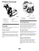 Product Overview g023785 Figure 5 g030588 Figure 4 1. Wheel-clutch lever 2. Handle 6. Traction-drive lever 7. Fuel cap 3. Broom-angle lever 8. Broom 4. Broom-drive lever 9. Broom-height-adjustment pin 1. Choke control 4. Engine-recoil handle 2. Fuel-shutoff valve 5. Engine On/Off switch 3. Throttle control Fuel-Shutoff Valve 5.